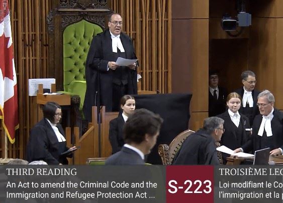 S-223 мыйзам проектиси алгач сенатор Салма Атаулладжан тарабынан каржыланган. Мыйзам долбоору адам органдарын сатууга байланыштуу жаңы кылмыштарды жөнгө салуу жана бул жаңы кылмышка экстерриториалдык юрисдикцияны кеңейтүү үчүн Кылмыш-жаза кодексине өзгөртүү киргизүү менен Канадада адам органдарын сатууну жөнгө салууну күчөтүүнү сунуштайт. Мыйзам долбоору ошондой эле иммиграция жана качкындарды коргоо мыйзамына туруктуу жашоочуларга же чет элдик жарандарга расмий жана ыктыярдуу макулдуксуз органдарды жыйноо жана сатуу менен байланышкан болсо, Канадага кирүүгө тыюу салуу үчүн түзөтүүнү көздөйт.